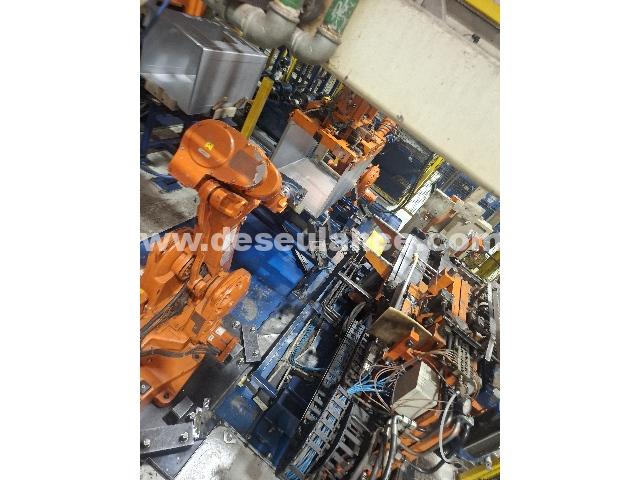 LINHA DE GABINETES M/EUROGAN: REALIZA CORTES, DOBRAS, ACOPLAMENTO DAS CANTONEIRAS, PARTINDO DO BLANK CHAPA METÁLICA C/SEQUÊNCIA DE OPERAÇÕES ATÉ O GABINETE FINAL. COMPOSTA C/02 ROBOS IRB 2400; 02 ROBOS IRB 6600; 03 ALIMENTADORES DE CANTONEIRAS; PANELAS VIBRATÓRIAS; 08 TRANSPORTADORES DE LIGAÇÃO; 04 UNS. HIDRÁULICAS, 02 PINÇAS TOG DE COSTURA; 02 PINÇAS TOG; 03 GRIPPER; ALIMENTAÇÃO; ESQUADRO; VENTOSAS; ESTRUTURA ALIMENTAÇÃO E COMPONENTES ELÉTRICOS NR12: 16 INVERSORES, 36 BARREIRAS, 04 CHAVES MAGNETICAS MONITORADAS SICK, 06 IHM, 03 BLOCOS TN6, BLOCO DE SEGURANÇA, 12 VALVULAS RESIDUAIS ALIVIO DE PRESSÃO. ATENÇÃO: DESMONTAGEM POR CONTA DA ELECTROLUX. RETIRADA A PARTIR DE 15/04. OBS.: VIDE DETALHES TÉCNICOS EM INFORMAÇÕES ADICIONAIS. (VENDA NO ESTADO, CONFORME LOTE EXPOSTO) (SÃO CARLOS/SP)