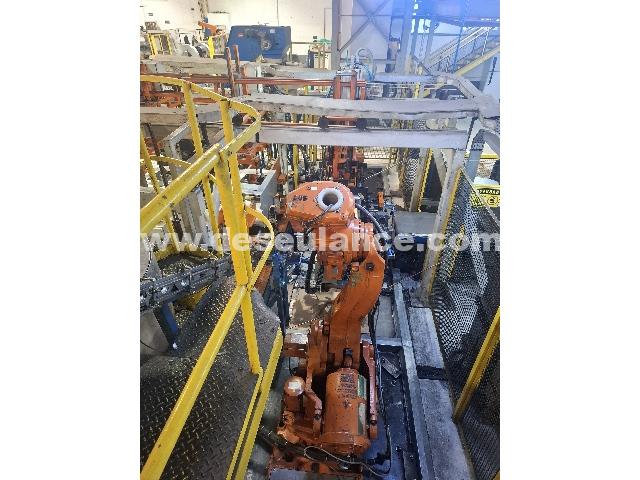 LINHA DE GABINETES M/EUROGAN: REALIZA CORTES, DOBRAS, ACOPLAMENTO DAS CANTONEIRAS, PARTINDO DO BLANK CHAPA METÁLICA C/SEQUÊNCIA DE OPERAÇÕES ATÉ O GABINETE FINAL. COMPOSTA C/02 ROBOS IRB 2400; 02 ROBOS IRB 6600; 03 ALIMENTADORES DE CANTONEIRAS; PANELAS VIBRATÓRIAS; 08 TRANSPORTADORES DE LIGAÇÃO; 04 UNS. HIDRÁULICAS, 02 PINÇAS TOG DE COSTURA; 02 PINÇAS TOG; 03 GRIPPER; ALIMENTAÇÃO; ESQUADRO; VENTOSAS; ESTRUTURA ALIMENTAÇÃO E COMPONENTES ELÉTRICOS NR12: 16 INVERSORES, 36 BARREIRAS, 04 CHAVES MAGNETICAS MONITORADAS SICK, 06 IHM, 03 BLOCOS TN6, BLOCO DE SEGURANÇA, 12 VALVULAS RESIDUAIS ALIVIO DE PRESSÃO. ATENÇÃO: DESMONTAGEM POR CONTA DA ELECTROLUX. RETIRADA A PARTIR DE 15/04. OBS.: VIDE DETALHES TÉCNICOS EM INFORMAÇÕES ADICIONAIS. (VENDA NO ESTADO, CONFORME LOTE EXPOSTO) (SÃO CARLOS/SP)